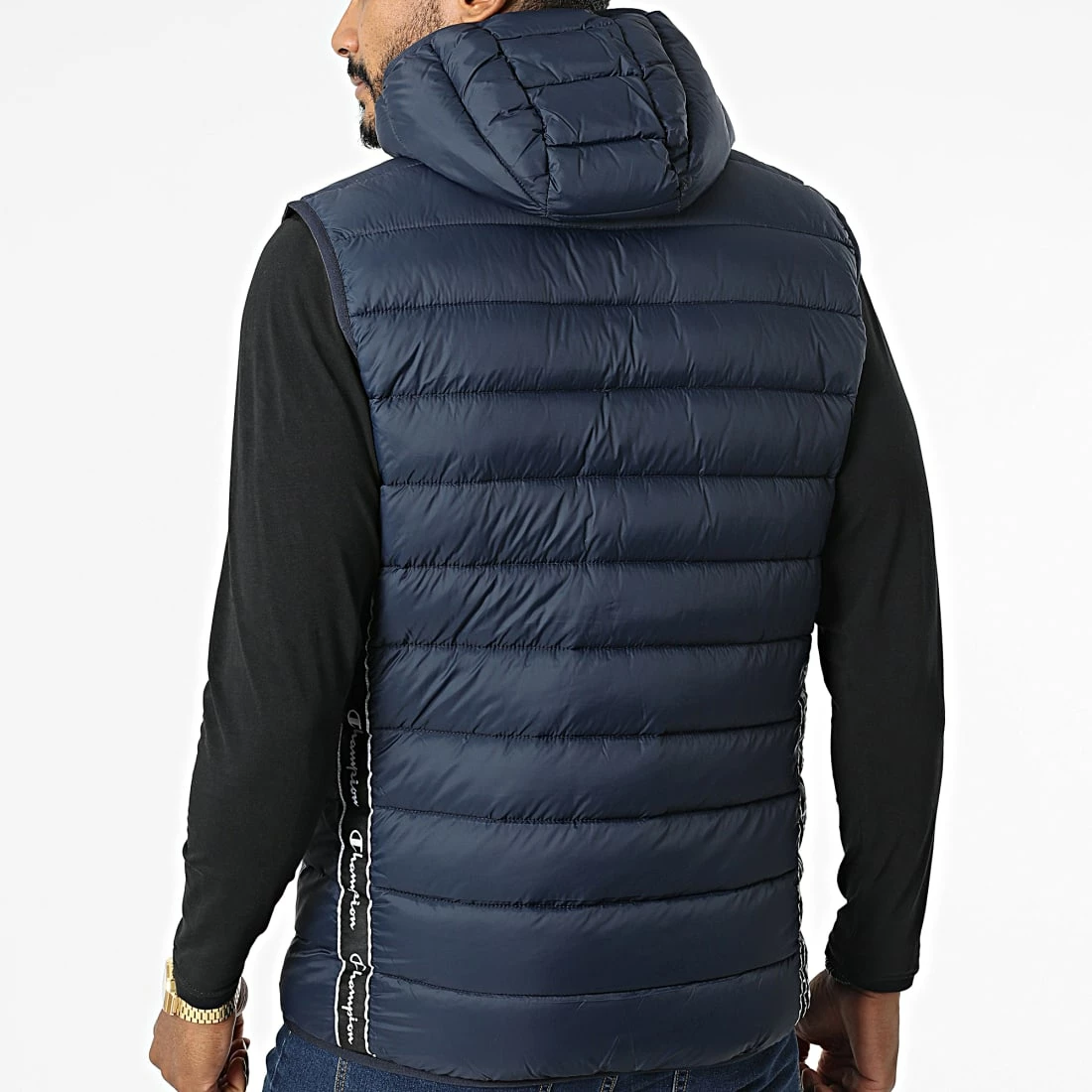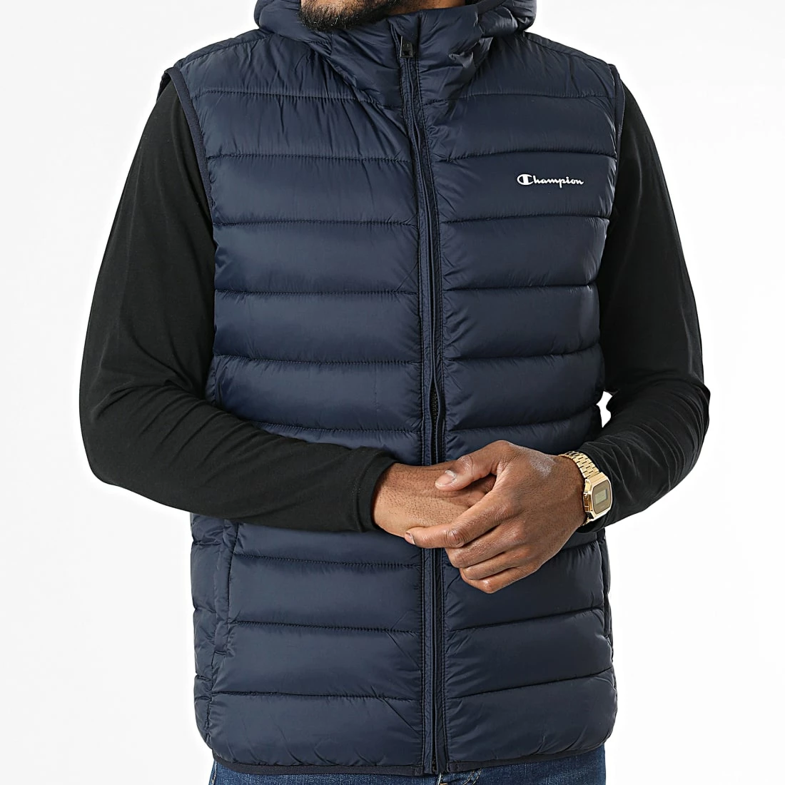 • Doudoune capuche sans manches chaude tendance avec visuel Champion appliqué